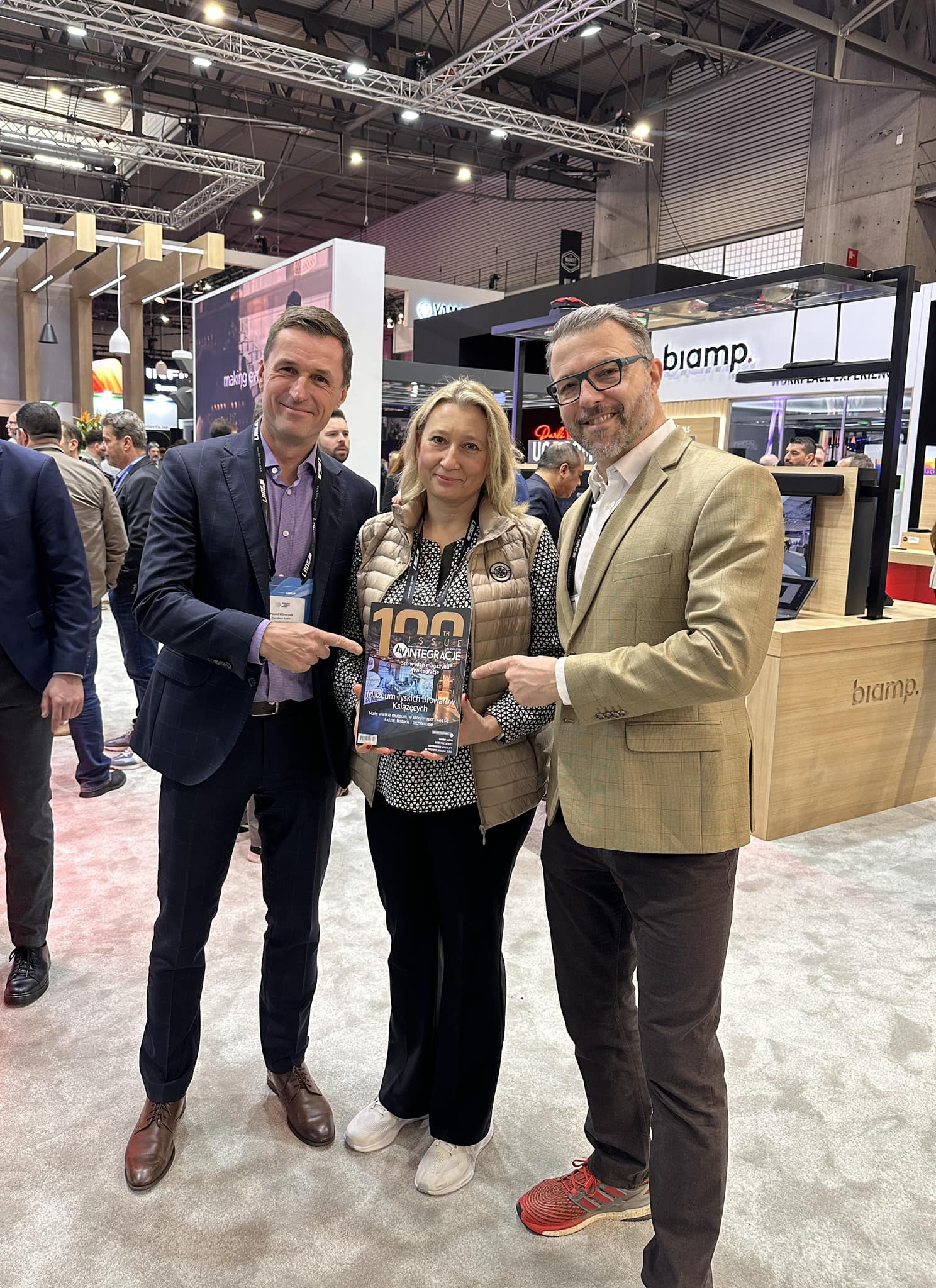 - Na zdjęciu jeden z wieloletnich partnerów magazynu AVIntegracje Konsbud Audio, a dokładnie: Agnieszka Pyrich (prezes zarządu), Jarek Kierkowski (dyrektor handlowy) z prawej oraz Paweł Klimczak (Dyrektor Rozwoju Biznesu b.partAV)