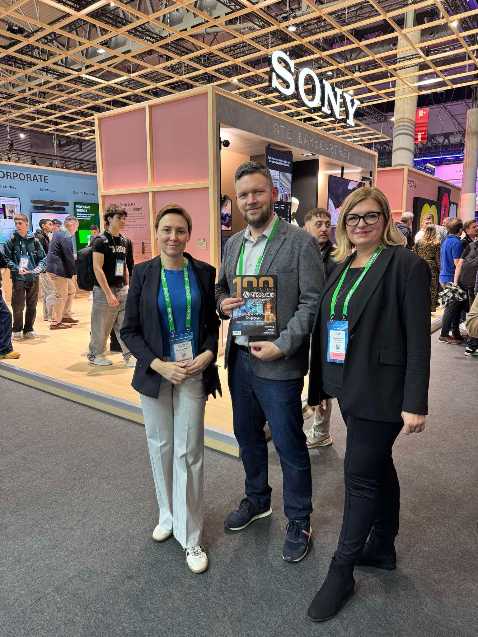 - Reprezentacja firmy Sony, od lewej Dorota Wódka-Kot, Piotr Gajewski, Aleksandra Jasińska z jubileuszowym, setnym wydaniem AVIntegracje!