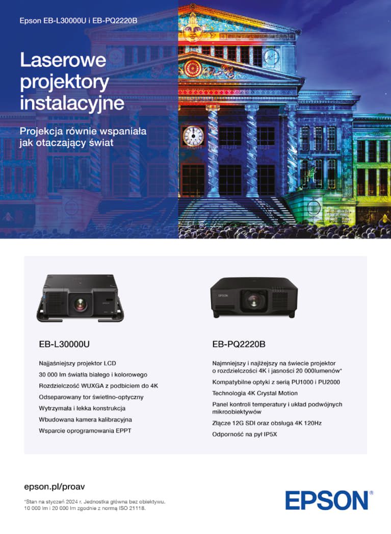 W tegorocznej edycji szczególne miejsce zajmują najnowsze urządzenia Epson, w tym wspomniany EB-PU2220B – jeden z najmniejszych i najlżejszych projektorów instalacyjnych 3LCD na rynku, oferujący imponującą moc 20 000 lumenów. Jego kompaktowy design, w połączeniu z efektywnością energetyczną, czyni go urządzeniem nie tylko ekologicznym, ale także idealnym dla wydarzeń artystycznych w otwartej przestrzeni, takich jak Kinomural.