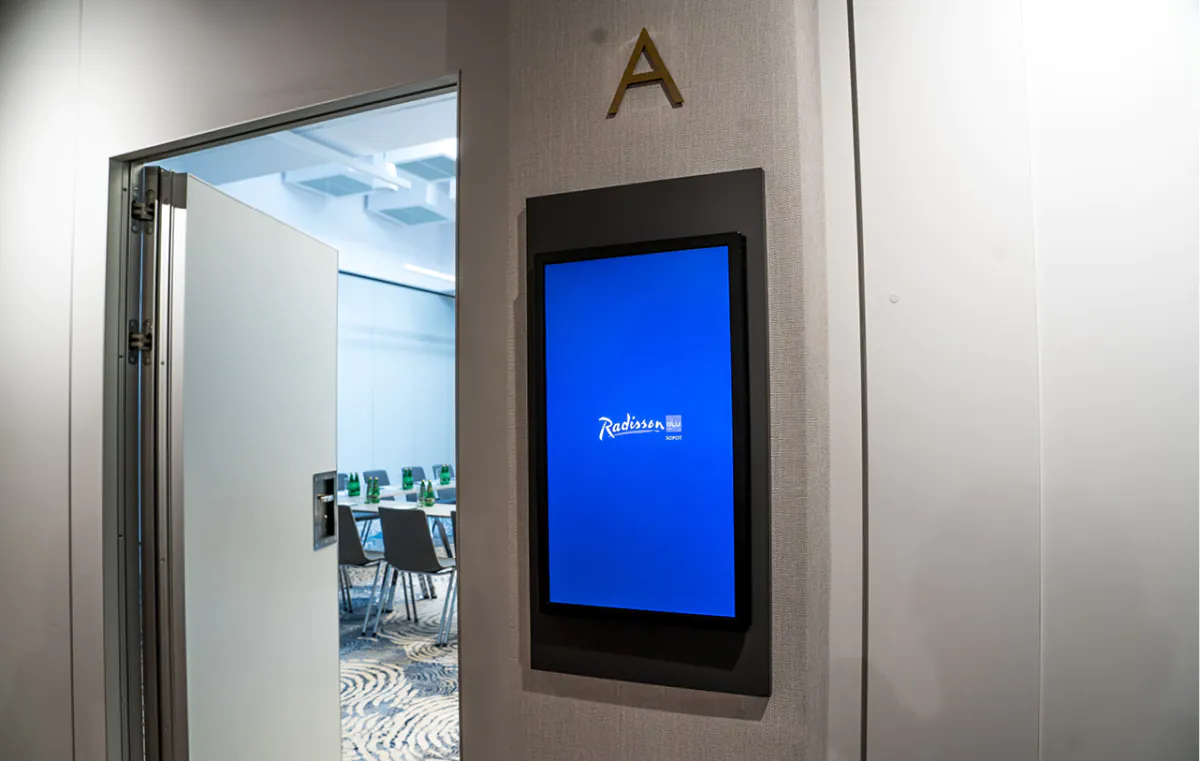 Hotel wyposażony jest w system informacyjny LG SuperSign, dzięki któremu goście zawsze wiedzą, do której sali powinni się udać.