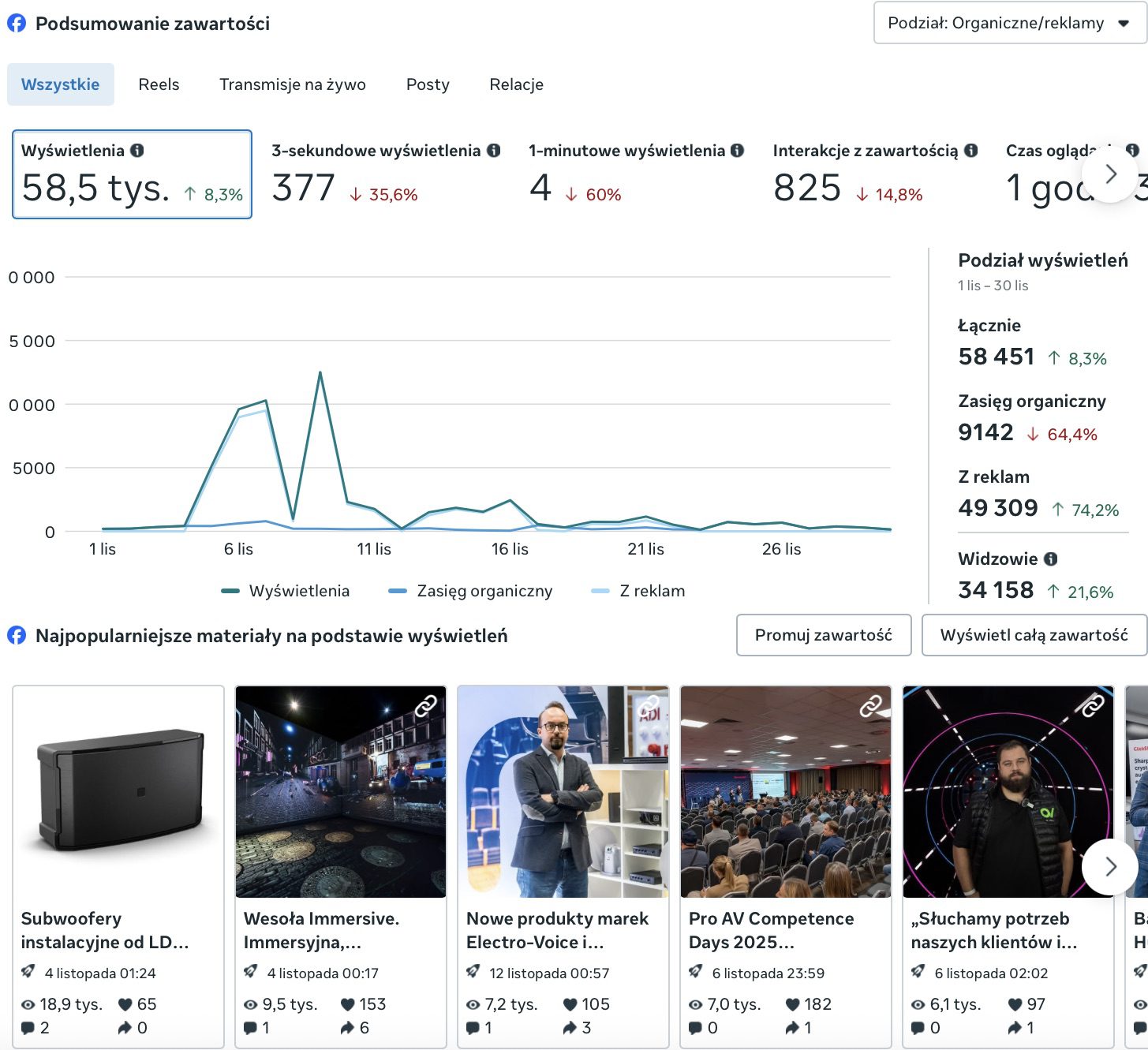 Liczba wyświetleń oraz liczba osób które zobaczyły materiały na FB